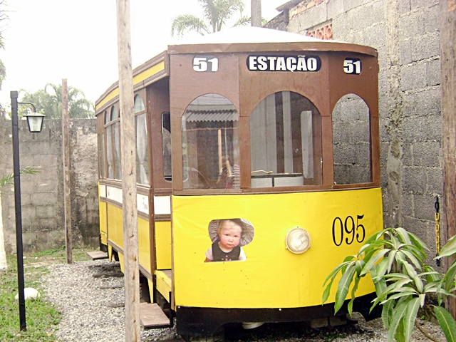 Um bom exemplo disso é o que Márcio Alexandre de Lucena construiu em sua casa, no bairro de Samaritá, área continental de São Vicente, SP: uma réplica de um dos bondes que circulam no centro histórico de Santos.